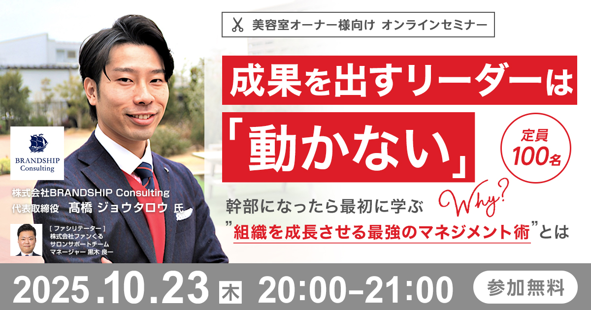 このセミナーでは、BRANDSHIPの髙橋ジョウタロウさんをお招きし、成果を出し続けるリーダーが共通して持つ「原理原則」と、揺るぎない軸を築き上げるための具体的な実践法をお伝えします。